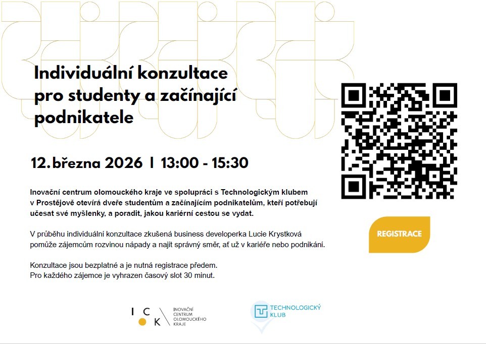 Inovační centrum olomouckého kraje ve spolupráci s Technologickým klubem v Prostějově otevírá dveře studentům a začínajícím podnikatelům, kteří potřebují učesat své myšlenky, a poradit, jakou kariérní cestou se vydat.
