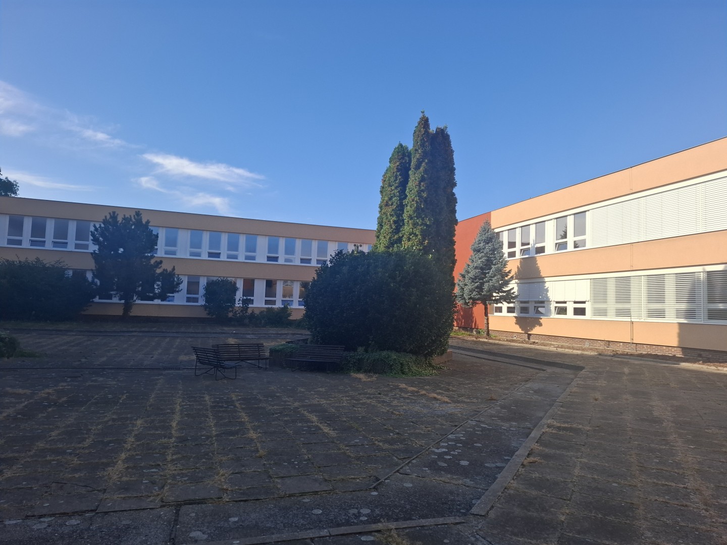 Součástí areálu základní školy je atrium mezi jednotlivými pavilony a v současné době tento prostor neplní požadavky vyplývající z provozu školy. Atrium potřebuje razantní zásah s cílem vytvoření důstojného společenského prostoru sloužícího pro výuku, odpočinek žáků i učitelů a také pro pořádání školních akcí.