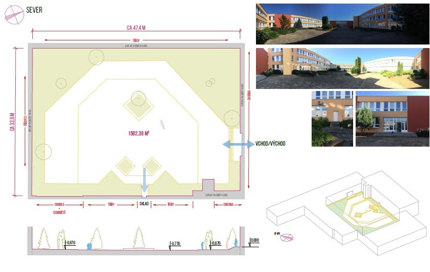 Dále je nutno zpracovat projektovou dokumentaci pro povolení stavby a provádění stavby za účelem transformace dožitého vnitřního atria školy, které v současné době již neplní požadavky vyplývající z provozu školy. Vzhledem ke své exponované pozici v rámci školních budov potřebuje razantní zásah. Smyslem návrhu je vytvoření důstojného společného prostoru sloužícího pro výuku, odpočinek žáků a kantorů i pro pořádání školních akcí. Zadavatel netrvá na navrhovaném řešení uvedeném ve studii. Součástí PD bude i umístění a napojení na inženýrské sítě zdvojené buňky, která bude sloužit jako zázemí pro družinu. Objekt a areál se nachází na pozemcích parc. č. 5722/62 v katastrálním území Prostějov.
