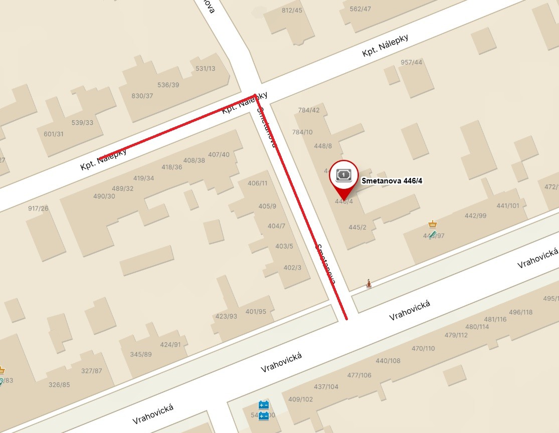 • Smetanova - mezi ul. Vrahovická a Kpt. Nálepky obě strany a kousek jižní části chodníku Kpt. Nálepky o celkové ploše cca 290 m2