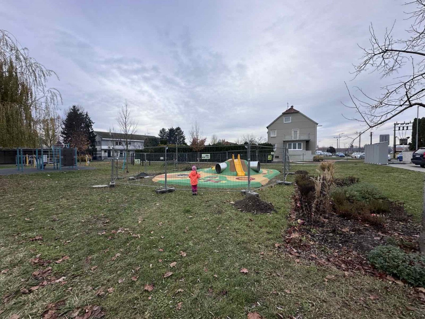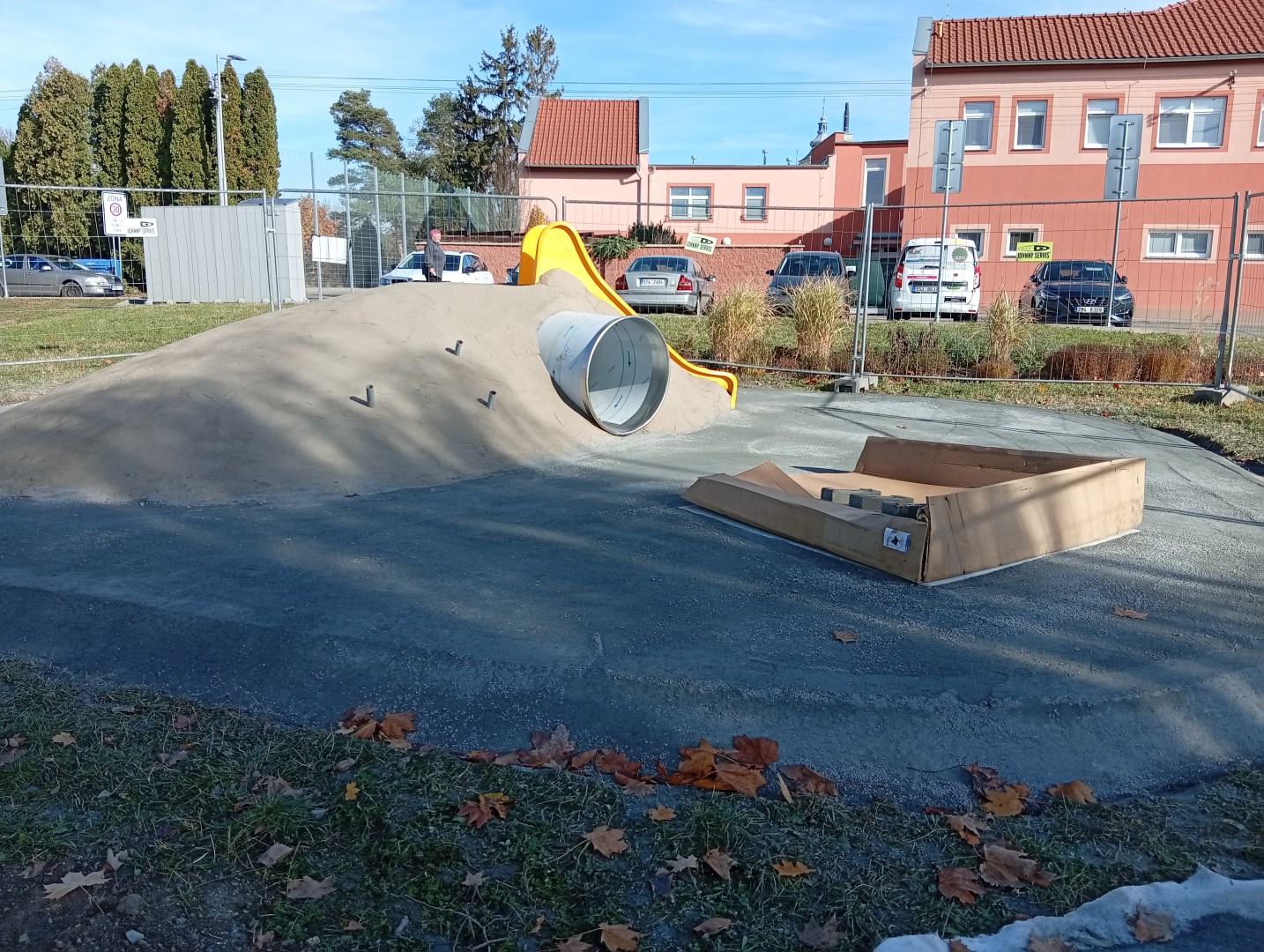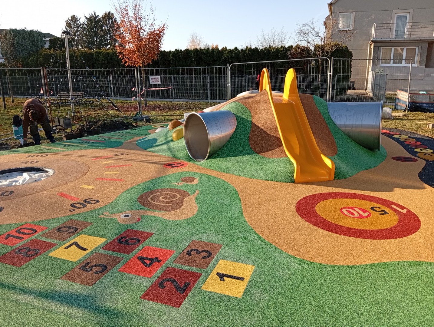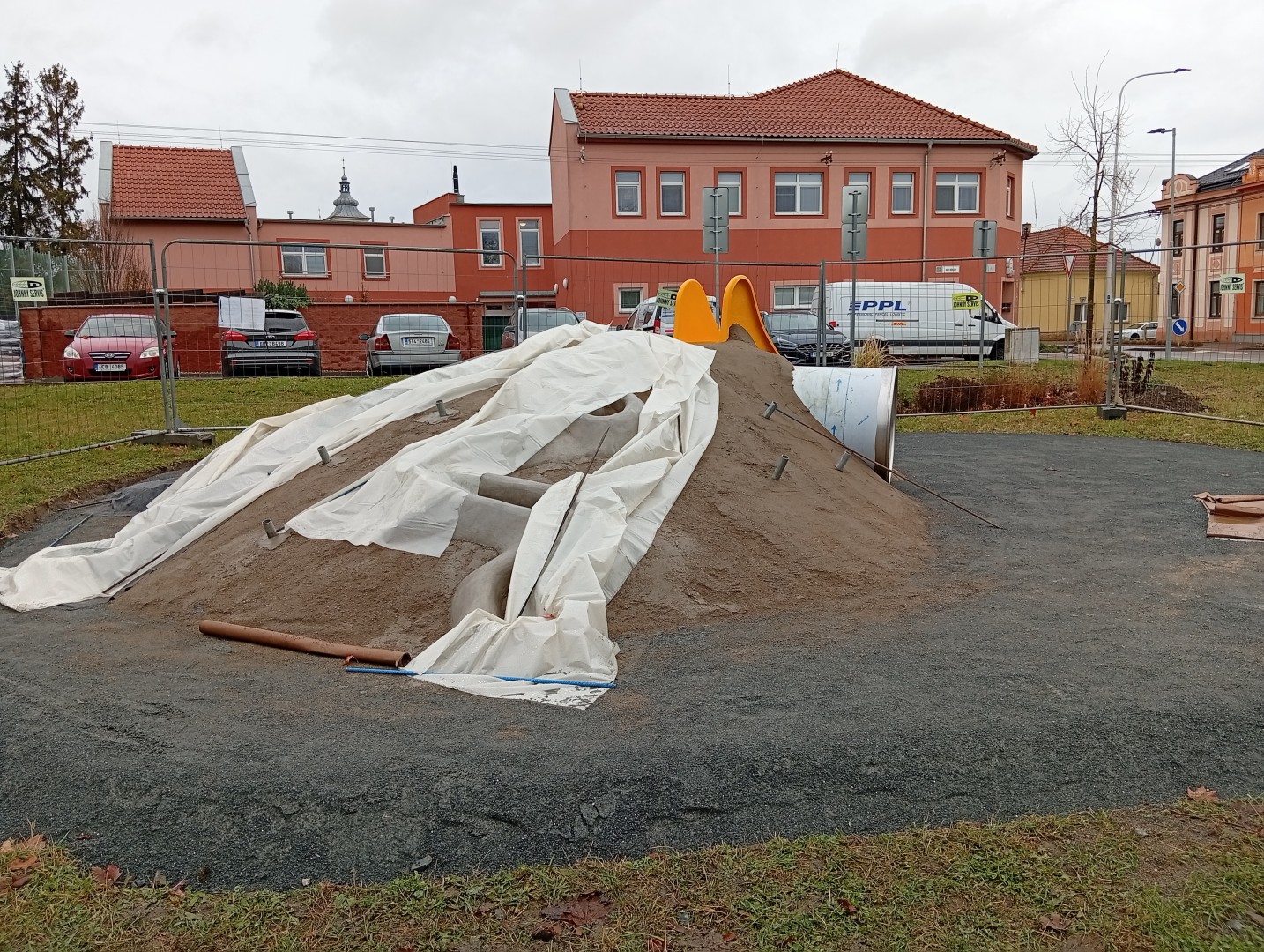 Od 30.10. byla zahájena realizace spodní stavby, od 4.11. se prováděla pokládka a tvarování pryžové vrstvy a umístění jednotlivých plošných prvků. Ještě chybí terénní práce a dokončení hřiště. Předpoklad ukončení prací je 20. listopadu.