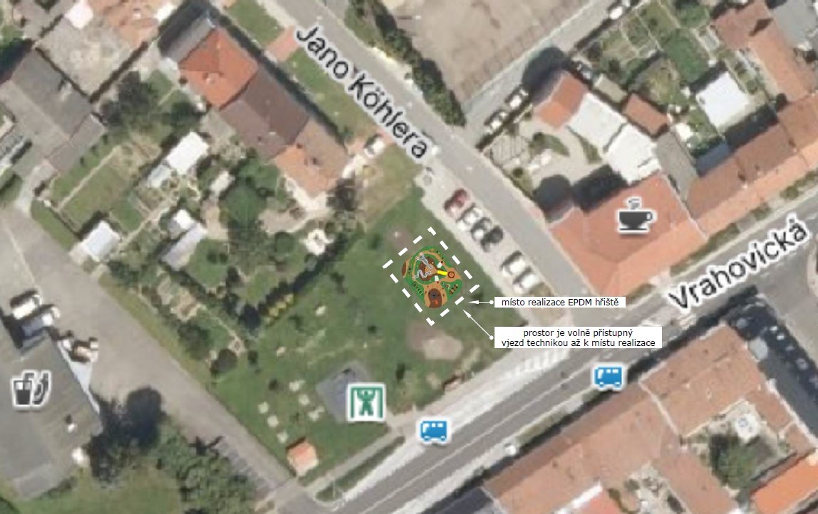 Toto hřiště doplní rekreační a sportovní lokalitu ve Vrahovicích, kde je nyní workoutové hřiště, posilovací stroje, lanový a balanční herní prvek, o další možnosti vyžití, tentokrát pro menší děti.