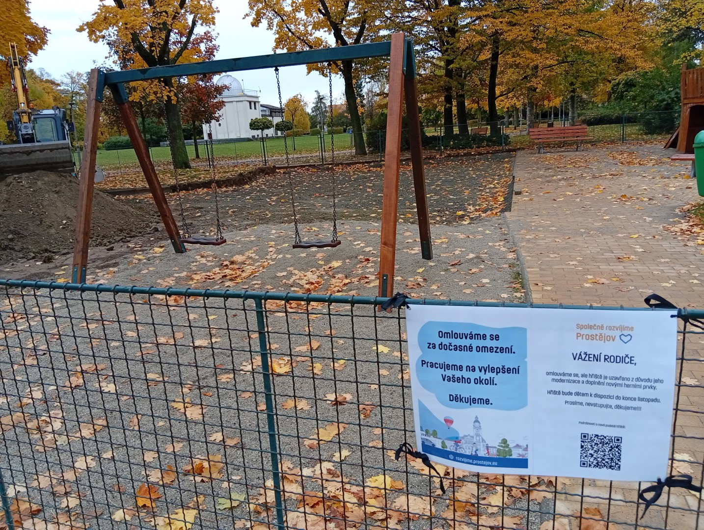 Pracovníci magistrátu vyhodnotili potřebné přípravné práce, např. odstranění stávající pergoly a betonové skruže, 2 tabulí na kreslení, lavičky ve východní části areálu u oplocení, vyjmutí prvku malého kolotoče, odstranění betonové dlažby pro umístění nového herního prvku a odstranění některých obrubníků na hřišti.